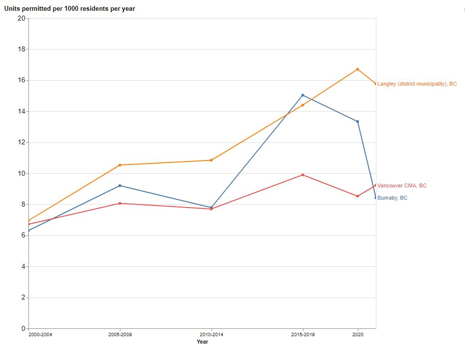 Brendan Dawe provides a similar perspective in a short essay on Twitter, explaining the difference between what the province is aiming for and what Burnaby and Langley have been doing. He observes that they permit a lot of new housing, but they also extract as much revenue as possible, which limits the rate of new building. They’re not trying to build enough housing to drive down prices and rents - as individual municipalities, they can’t. This is what the province is pushing for.